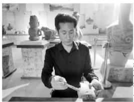 馬黑麥在修復(fù)古彩陶
