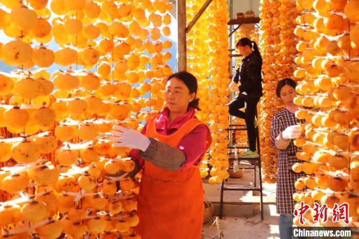 資料圖:金黃的柿子掛滿了房前屋后,一片黃澄澄金燦燦?!⊥跣∮?nbsp;攝