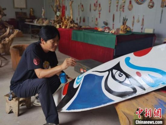 取材、挖空、刨光、勾線、著色……經(jīng)過這些步驟,一個(gè)馬勺臉譜就完成了。馬勺臉譜由中國民間社火臉譜演化而來,已有數(shù)千年歷史,系列產(chǎn)品主要包括馬勺臉譜、梭子臉譜、鏟子臉譜、木锨臉譜等。9月初,甘肅省隴南市徽縣馬勺臉譜的省級傳承人馬龍,依舊在工作室創(chuàng)作。今年47歲的他,堅(jiān)守馬勺臉譜的制作技藝已有20余載,不僅傳承了社火臉譜和京劇臉譜的古韻,而且創(chuàng)新了貼金、刻繪等技藝,在傳統(tǒng)中融入了現(xiàn)代造型和色彩元素。它的作品在網(wǎng)絡(luò)引起熱議:“臉譜畫在梭子上,厲害了。”“寶藏非遺,期待下次打卡。”