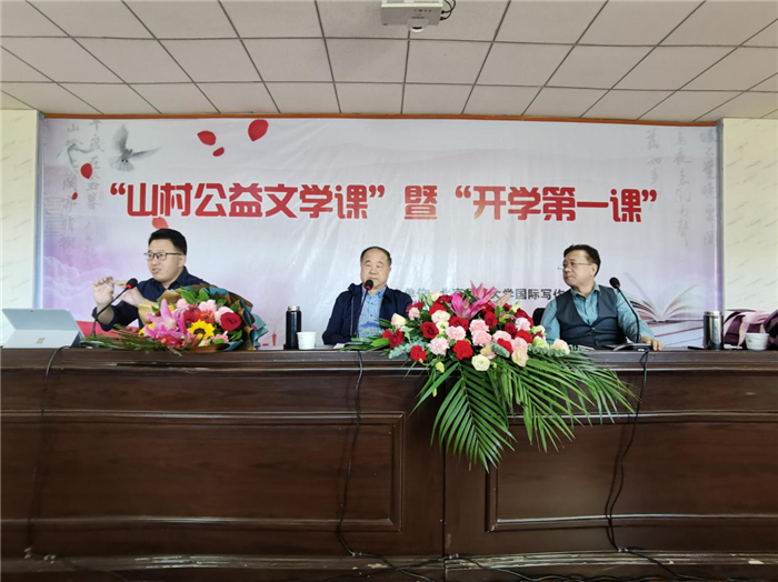 中國(guó)甘肅網(wǎng)9月6日訊 9月6日上午九點(diǎn),由北京師范大學(xué)國(guó)際寫作中心、武威市教育局、武威市文體廣電和旅游局、涼州區(qū)教育局共同主辦的“山村公益文學(xué)課”暨“開學(xué)第一課”在武威第十一中學(xué)開講。活動(dòng)由武威第十一中學(xué)趙衛(wèi)國(guó)校長(zhǎng)主持。諾貝爾文學(xué)獎(jiǎng)獲獎(jiǎng)作家、北京師范大學(xué)國(guó)際寫作中心主任莫言教授以《讀書與寫作》為題,為十一中的師生講了一堂別開生面、深入淺出的寫作課。隨后,北京師范大學(xué)國(guó)際寫作中心主任助理翟文鋮教授、西北師范大學(xué)傳媒學(xué)院院長(zhǎng)徐兆壽教授,分別就同學(xué)們的作文進(jìn)行了現(xiàn)場(chǎng)指導(dǎo)。參加此次活動(dòng)的還有北京舒同文化研究會(huì)會(huì)長(zhǎng)王振先生、北京師范大學(xué)國(guó)際寫作中心主任助理張曉琴教授。