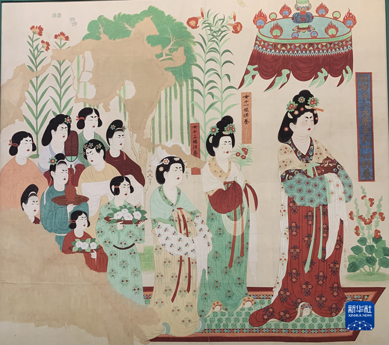 《都督夫人禮佛圖》復(fù)制品(段文杰臨?。P氯A社記者 張玉潔 攝