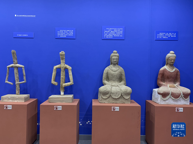 這是敦煌石窟藝術(shù)展展示的彩塑制作步驟。新華社記者 張玉潔 攝