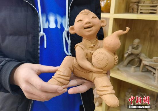 圖為學(xué)生創(chuàng)作“孩童和葫蘆”。 劉玉桃 攝