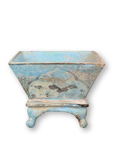 綠釉開光黑花蘆雁紋方斗