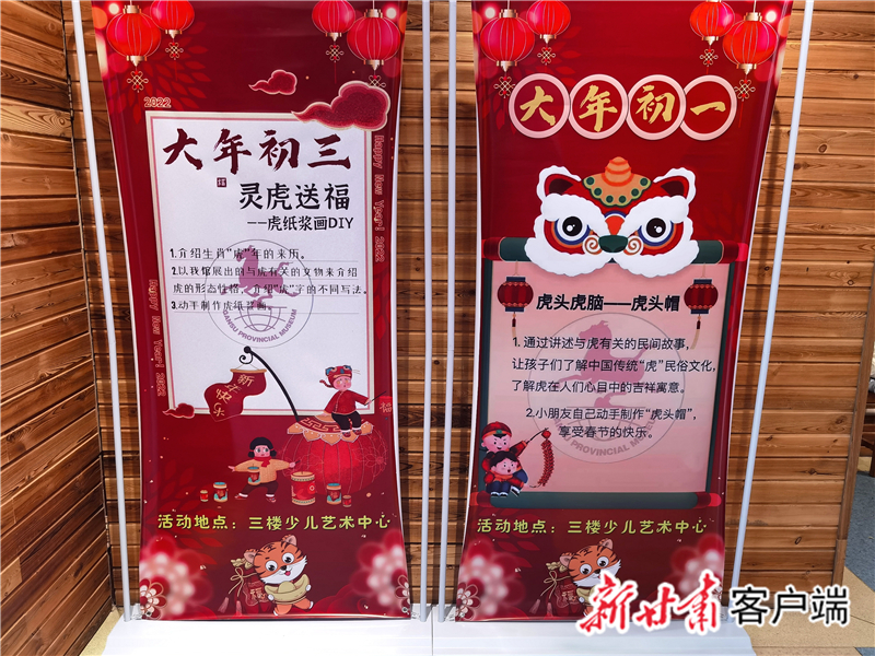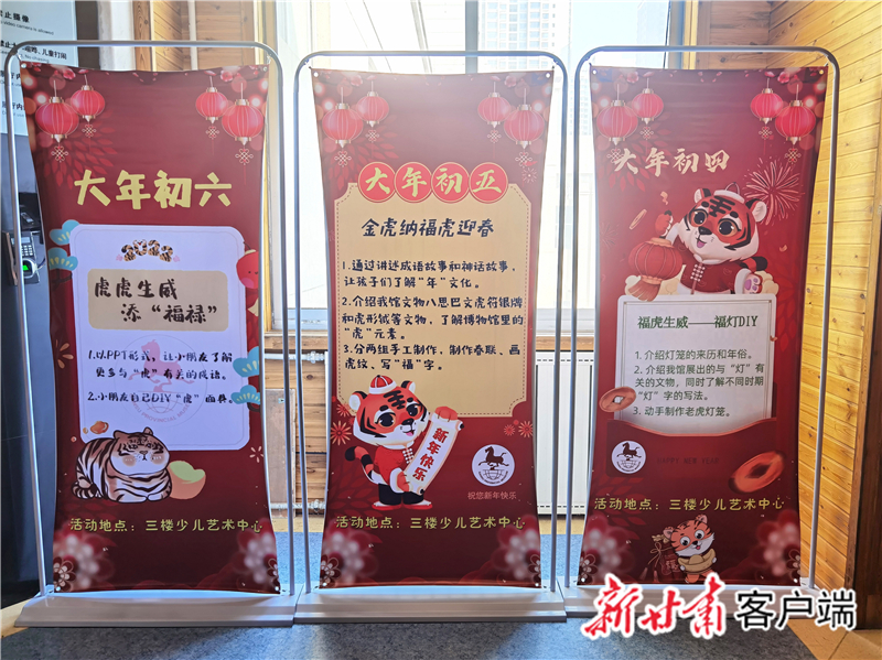 “后續(xù),還有大年初三的‘靈虎送福——虎紙漿畫(huà)DIY ’活動(dòng)、大年初四的‘?;⑸?mdash;—福燈DIY ’活動(dòng)、大年初五的‘金虎納?;⒂?rsquo;活動(dòng)、大年初六的‘虎虎生威添‘福祿’活動(dòng)’。”省博物館社會(huì)教育部主任盧冬介紹,每場(chǎng)活動(dòng)面向約30名小朋友開(kāi)展,經(jīng)過(guò)前期策劃準(zhǔn)備,除了省博物館社教部的10余名工作人員,給孩子們普及有關(guān)虎和北京冬奧會(huì)的知識(shí),還有來(lái)自西北師范大學(xué)、蘭州二十七中等校的學(xué)生志愿者,指導(dǎo)輔助孩子們玩游戲、做手工。