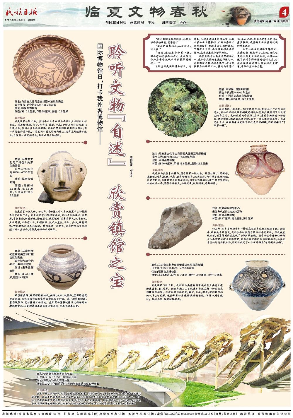 為了讓讀者更好地了解歷史、熱愛(ài)文物,燃起學(xué)習(xí)、發(fā)掘、研究臨夏悠久歷史文化的熱情,本報(bào)特挑選了我州各博物館的鎮(zhèn)館之寶,讓這些精美藏品自己告訴你歷史智慧,帶給你信心和力量。