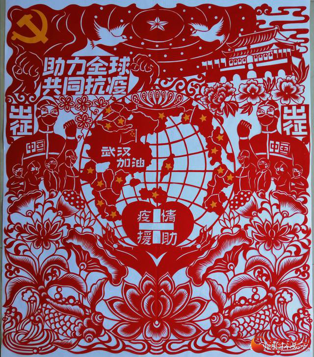 2020年10月中華文化促進(jìn)會(huì)剪紙藝術(shù)委員會(huì)協(xié)同杭州市文化廣電旅游局,杭州市文化館共同舉辦“愛心同鑄,共創(chuàng)末來(lái)”全國(guó)抗疫情剪紙精品展中,剪紙作品《助力全球,共同抗疫》入選并獲銀獎(jiǎng)。