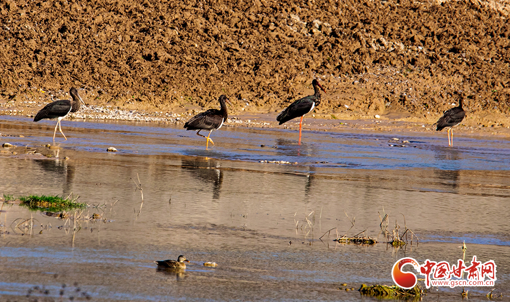近日,大批被比喻為鳥(niǎo)中“大熊貓”的黑鸛在平?jīng)鍪谐缧趴h汭河棲息,它們身軀挺拔,纖頸長(zhǎng)腿,姿態(tài)優(yōu)美,或悠閑覓食,或展翅翱翔。