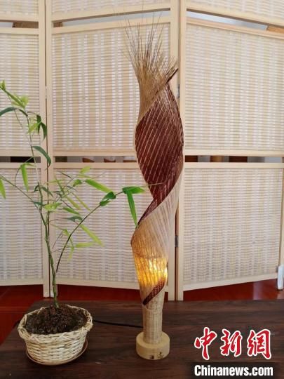 “竹編分為平面竹編和立體竹編,后者難度稍大,在經(jīng)緯編織的基礎(chǔ)上,還要穿插各種技法,如編、插、穿、削、鎖、釘、扎、套等,使編出的圖案變化多樣。”張照杰以一件“網(wǎng)紅產(chǎn)品”火炬造型落地?zé)魹槔f(shuō),從選材到制作完成,他耗費(fèi)了近200個(gè)小時(shí)。