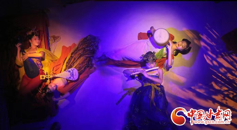 第二表演區(qū)中觀眾將親眼目睹王圓箓送出國寶時(shí)的那一幕“心酸”。并在不知覺中被分成十六組進(jìn)入不同的 “洞窟”,與不同時(shí)代古人“對(duì)談”。行五十步穿越百年,再行百步穿越千年。