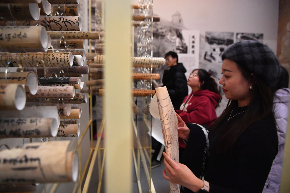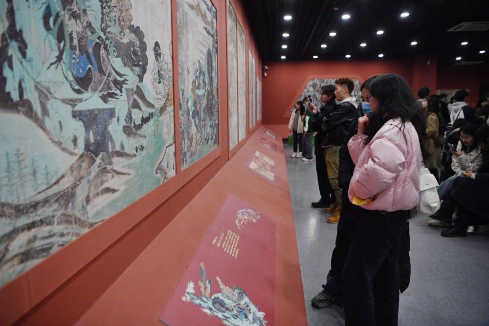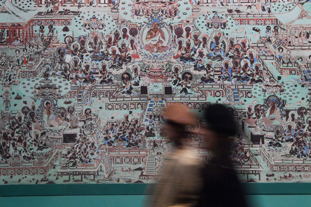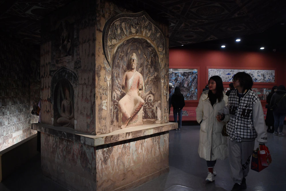 4月5日,觀眾在敦煌研究院蘭州分院敦煌藝術(shù)館參觀。新華社記者 陳斌 攝
