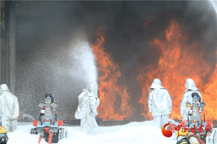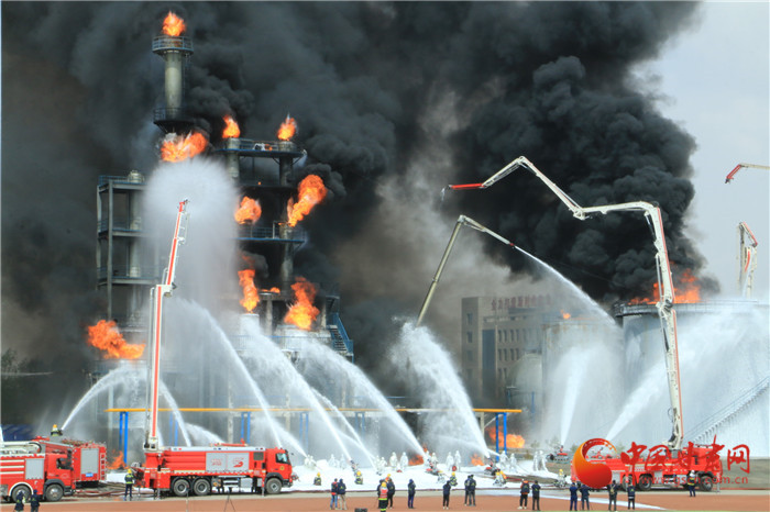 現(xiàn)場(chǎng),爆炸聲浪一波未平,一波又起,黑煙滾滾夾雜火苗亂竄。在嚴(yán)峻考驗(yàn)面前,消防隊(duì)伍采用先進(jìn)技術(shù)壓制火力,發(fā)起總攻。最大程度模擬真實(shí)火災(zāi)場(chǎng)景,達(dá)到應(yīng)對(duì)復(fù)雜火災(zāi)考驗(yàn)的能力。