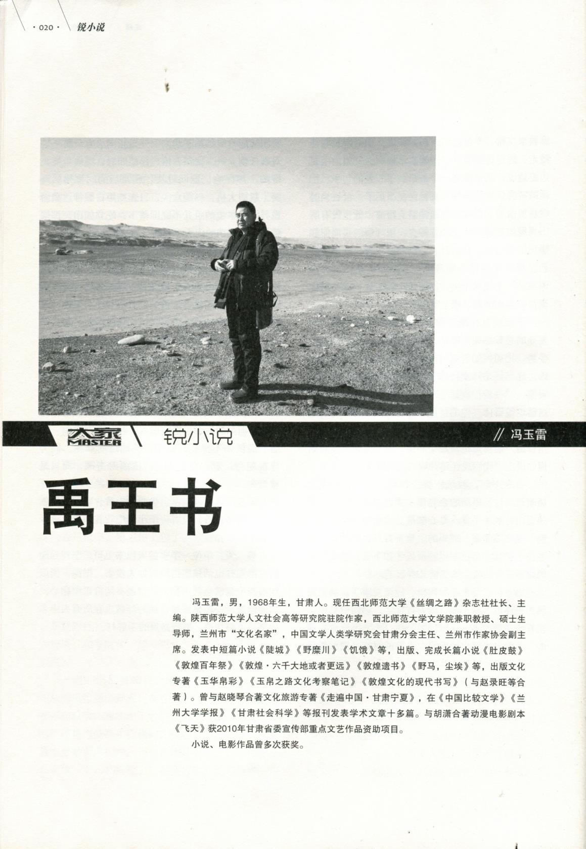 馮玉雷,畢業(yè)于陜西師范大學(xué)中文系,現(xiàn)任甘肅文化發(fā)展研究院常務(wù)副院長。一級(jí)作家。陜西師范大學(xué)人文社會(huì)科學(xué)高等研究院特聘駐院作家,上海交通大學(xué)神話學(xué)研究院學(xué)術(shù)委員,蘭州金城文化名家,中國比較文學(xué)學(xué)會(huì)文學(xué)人類學(xué)研究會(huì)理事。中國作家協(xié)會(huì)會(huì)員。馮玉雷自2006年開始研究玉玉器和玉文化,在《甘肅社會(huì)科學(xué)》《寧夏社會(huì)科學(xué)》《中國社會(huì)科學(xué)報(bào)》《中國藝術(shù)報(bào)》等報(bào)刊發(fā)表玉文化學(xué)術(shù)論文多篇。出版長篇小說《敦煌·六千大地或者更遠(yuǎn)》《敦煌遺書》《野馬,塵埃》《禹王書》及玉文化專著《玉華帛彩》《玉帛之路文化考察記》《條條玉路通昆侖》等。中篇小說《禹王書》入圍第八屆魯迅文學(xué)獎(jiǎng)。榮登《大家》2020年第1期封面人物。