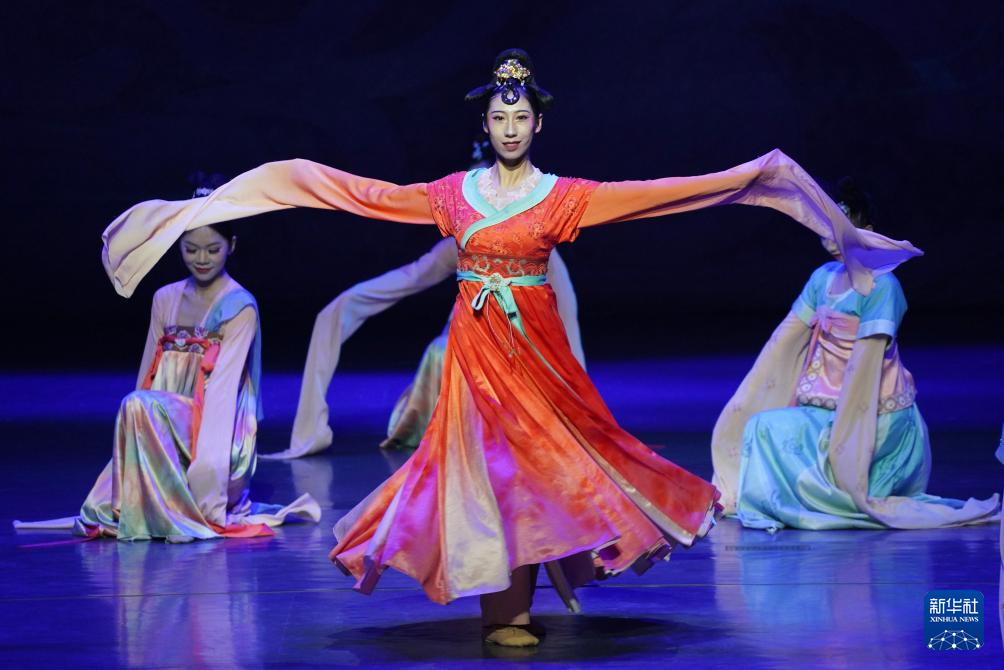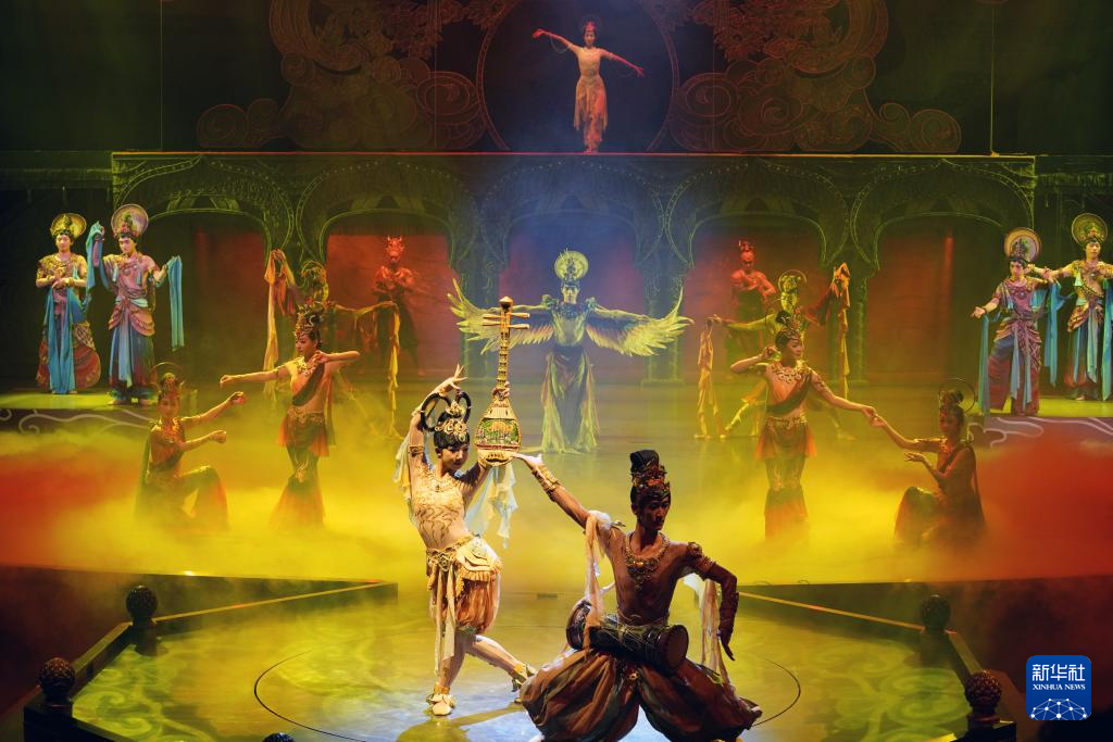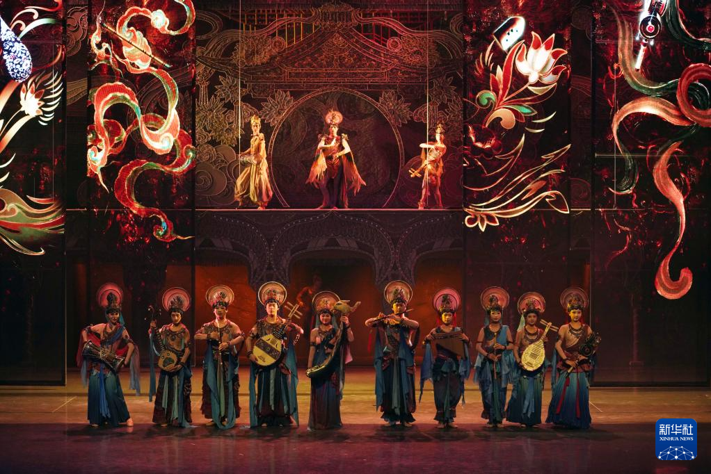 8月9日,演員在《樂(lè)動(dòng)敦煌》中表演。新華社記者 馬寧 攝