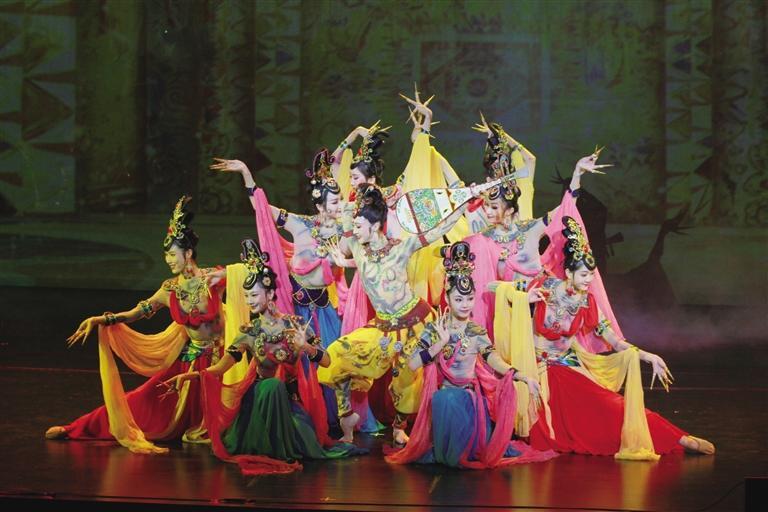 中國甘肅網(wǎng)9月6日訊 據(jù)蘭州日報報道(首席記者 李超 攝)第六屆絲綢之路(敦煌)國際文化博覽會今日開幕。9月5日晚8時,作為本次博覽會迎賓演出,由中共甘肅省委宣傳部攜手中國東方演藝集團、中央民族樂團、蘭州大劇院等聯(lián)合出品的大型音樂劇《飛天》在敦煌大劇院上演。《飛天》是中國著名音樂劇制作人李盾、作曲家三寶、劇作家關山歷時7年思索,共同編創(chuàng),由200多人組成講述敦煌的專業(yè)團隊,14首代表曲目輪番上演。在兩個小時的演出中,“莫高精神”在每一首曲目中得以詮釋。