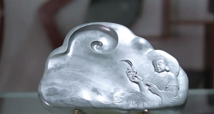 政策支持、資金投入、行業(yè)協(xié)會(huì)與合作組織的建立讓洮硯產(chǎn)業(yè)在瓜州穩(wěn)穩(wěn)扎下了根。在這片全新的文化土壤上,碧綠如藍(lán)的洮硯石汲取靈感,雕刻者以“一帶一路”為主題,以敦煌壁畫和瓜州張芝、玄奘、石窟、邊關(guān)等元素為題材,將絲路文化和洮硯制作技藝融合,打造出富有地域特色的文化旅游藝術(shù)產(chǎn)品。
