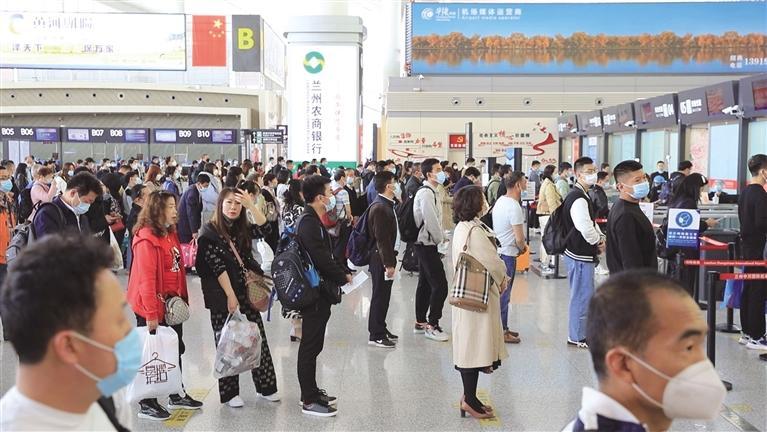 旅客排隊(duì)辦理值機(jī) □照片由省民航機(jī)場集團(tuán)提供