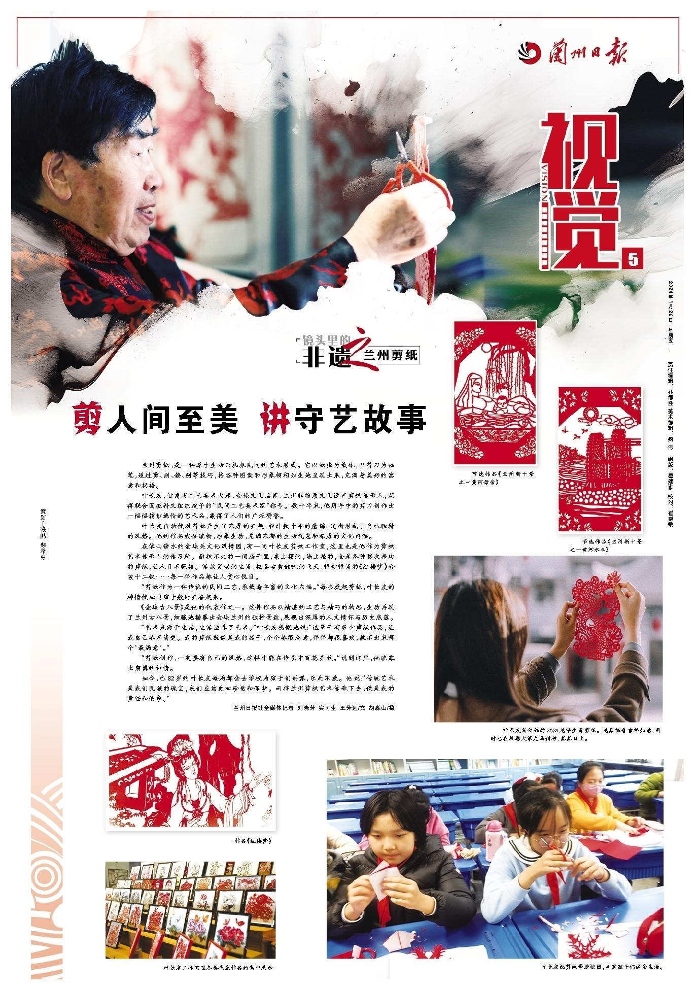 如今,已82歲的葉長友每周都會去學校為孩子們講課,樂此不疲。他說:“傳統(tǒng)藝術(shù)是我們民族的瑰寶,我們應該更加珍惜和保護。而將蘭州剪紙藝術(shù)傳承下去,便是我的責任和使命。”