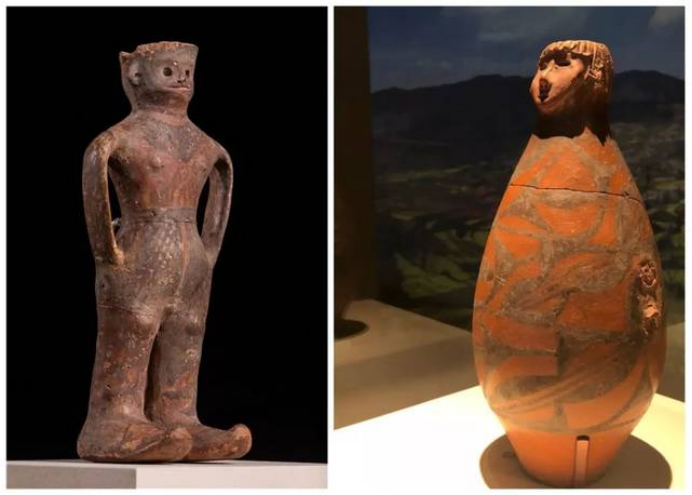 隴東有少女,而位于河西的玉門火燒溝同樣出土了一件距今3700多年的人形彩陶罐,被人們稱做“河西少年”。在2019年“少女”與“少年”這一對“金童玉女”就已經(jīng)邂逅了,2019年中國國家博物館展出“絲路孔道——甘肅文物精華展”時(shí),在展覽序廳門口了生了這樣一場友愛的“接力”。隴東大地灣的可愛“少女”——人頭形器口彩陶瓶說:“出來有一陣子了,在京城過了端午節(jié),該回家了!在京的時(shí)間雖短,但我很高興作為代表在國家博物館迎接全國、全世界的觀眾,希望還有機(jī)會可以再來!”。河西火燒溝的酷“少年”——人形彩陶罐說:“您回家了,我接替您的工作,在展覽的大門口,繼續(xù)帶領(lǐng)觀眾領(lǐng)略多彩厚重的甘肅歷史文明!”