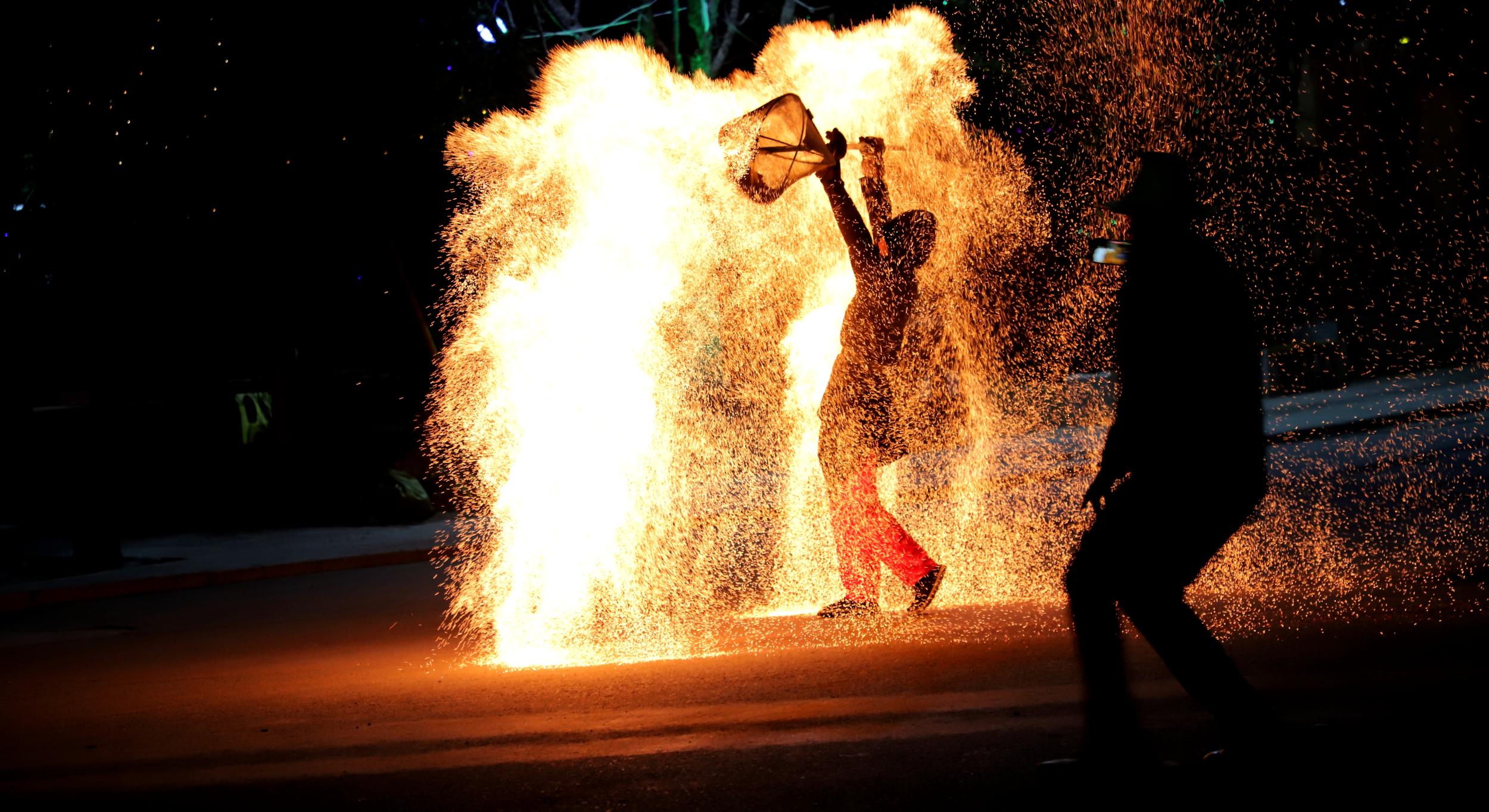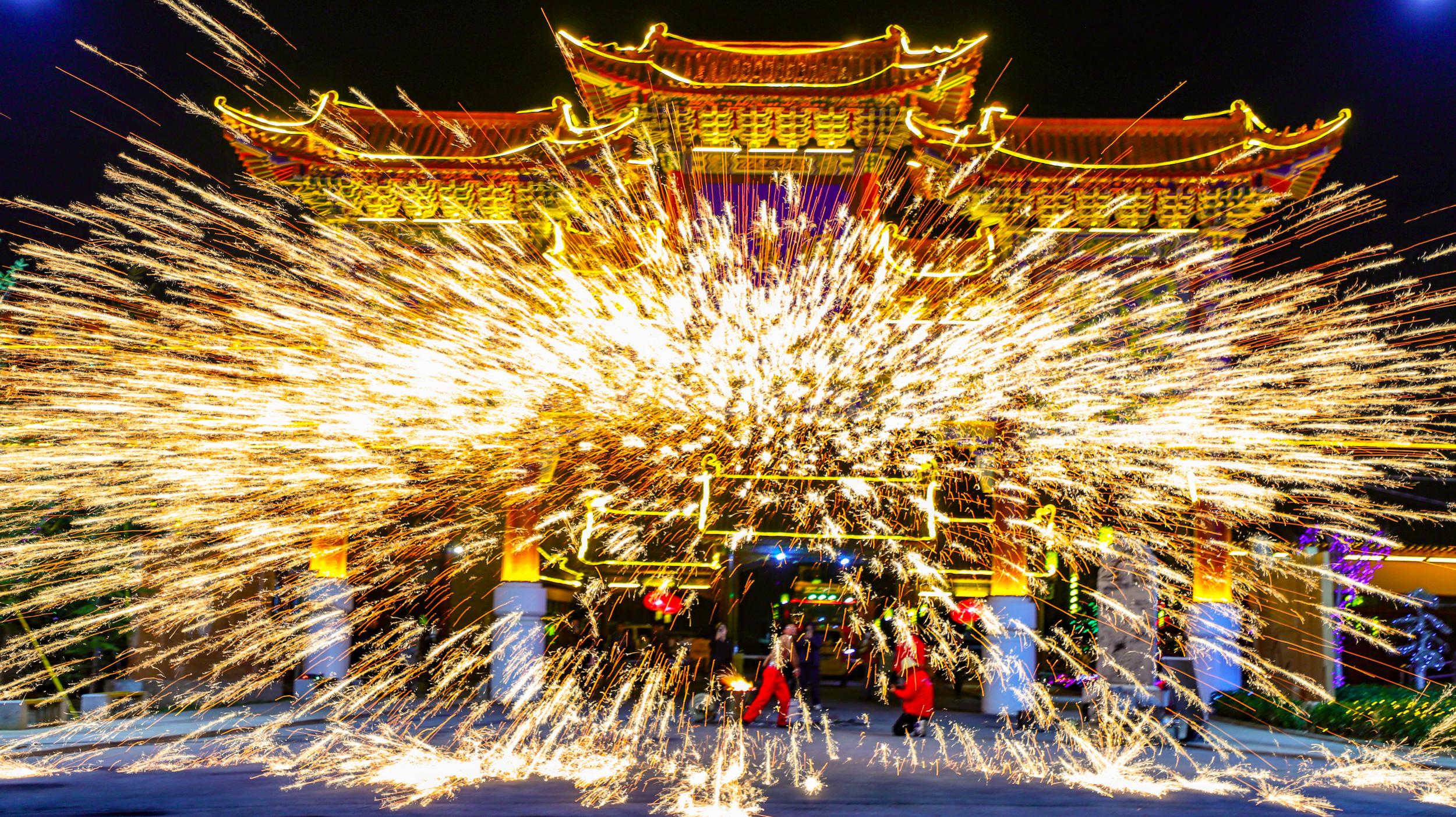 非遺絕技“打鐵花”點靚水簾洞景區(qū)不夜天