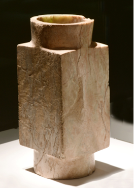 ?、偻邷霞y玉琮高14.7、邊長8.2、孔徑6.95厘米。②弦紋玉琮高16.2、邊長7.8、孔徑6.95厘米。③素面玉琮高16.7、邊長7.2、孔經(jīng)6.4厘米。④素面玉琮 高12.8、邊長8.3、孔徑7.3厘米。