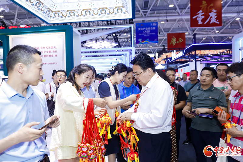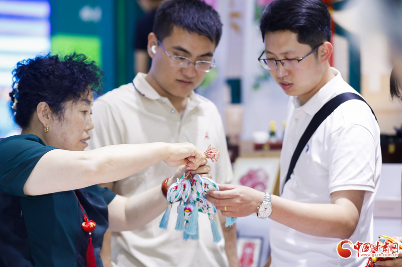 在展館內(nèi),慶陽香包、剪紙等民俗產(chǎn)品同步進(jìn)行展示展銷,深受現(xiàn)場(chǎng)觀眾歡迎,大家紛紛爭(zhēng)相購(gòu)買。