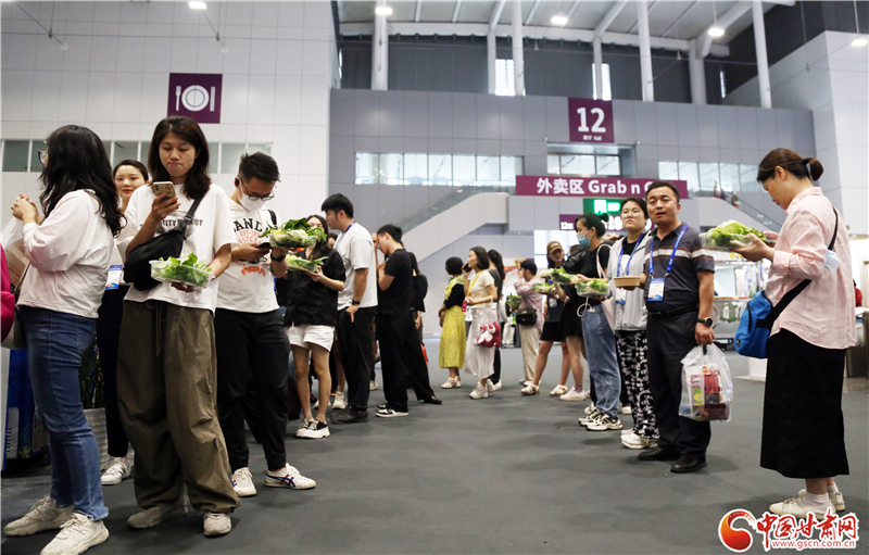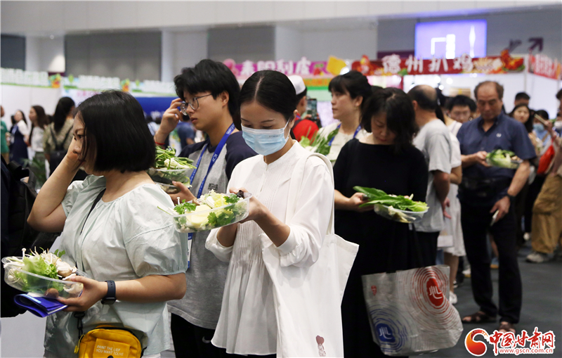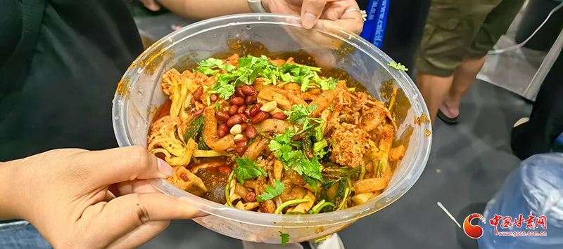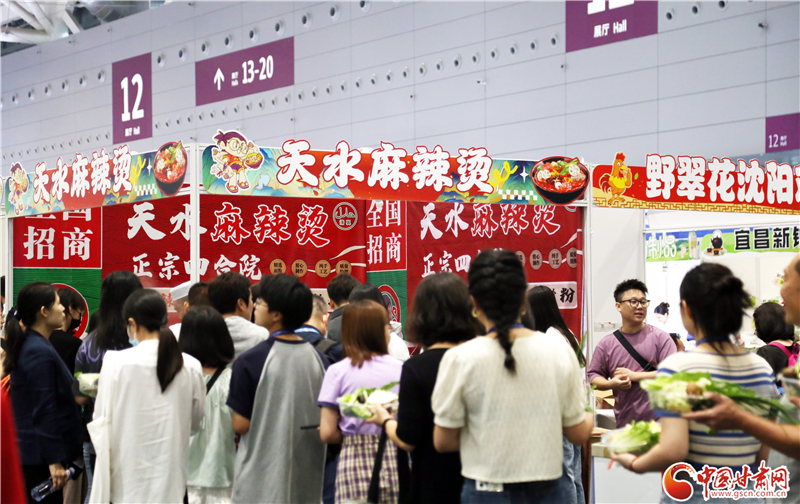 記者在現(xiàn)場看到,前往蘭州牛肉面、天水麻辣燙兩個展區(qū)品嘗美食的游客絡(luò)繹不絕。特別是在天水麻辣燙展區(qū),端著裝有各類蔬菜菜盆的食客排起了長隊,紛紛翹首以盼,期待蔬菜下鍋,一嘗“麻”“辣”美味。