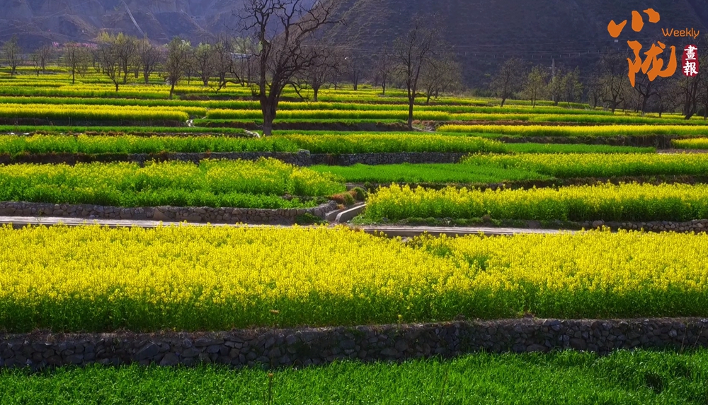 從這里望去,群峰逶迤綿延,山腳下梯田相連成片,伴著山間的涼風,空氣中彌漫著油菜花的芬芳。