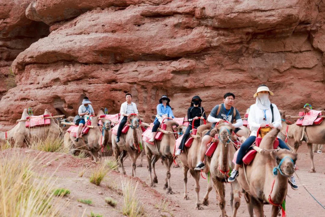 在甘州區(qū)平山湖大峽谷,采風(fēng)團(tuán)成員乘坐越野車進(jìn)入夢(mèng)幻大峽谷谷底,在藍(lán)天白云下,縱橫的溝壑、林立的群峰、幽靜的森林、蒼茫的戈壁、多彩的民俗讓采風(fēng)團(tuán)成員嘆為觀止。來自福建的微博三百萬大V張文圖說:“我已經(jīng)是第三次來張掖,此刻騎著駱駝踏入峽谷,抬頭看那高聳的崖壁帶來的震撼感瞬間將我包圍。沿著峽谷前行,每一步都充滿驚喜,太讓人驚嘆了。”“這次采風(fēng)活動(dòng)為我們搭建了很好的交流平臺(tái),特別是張掖獨(dú)特的地貌和優(yōu)美的自然風(fēng)光,都是很好的攝影素材,希望大家在這里收獲滿滿!”來自飛翔旅行的曹偉說。