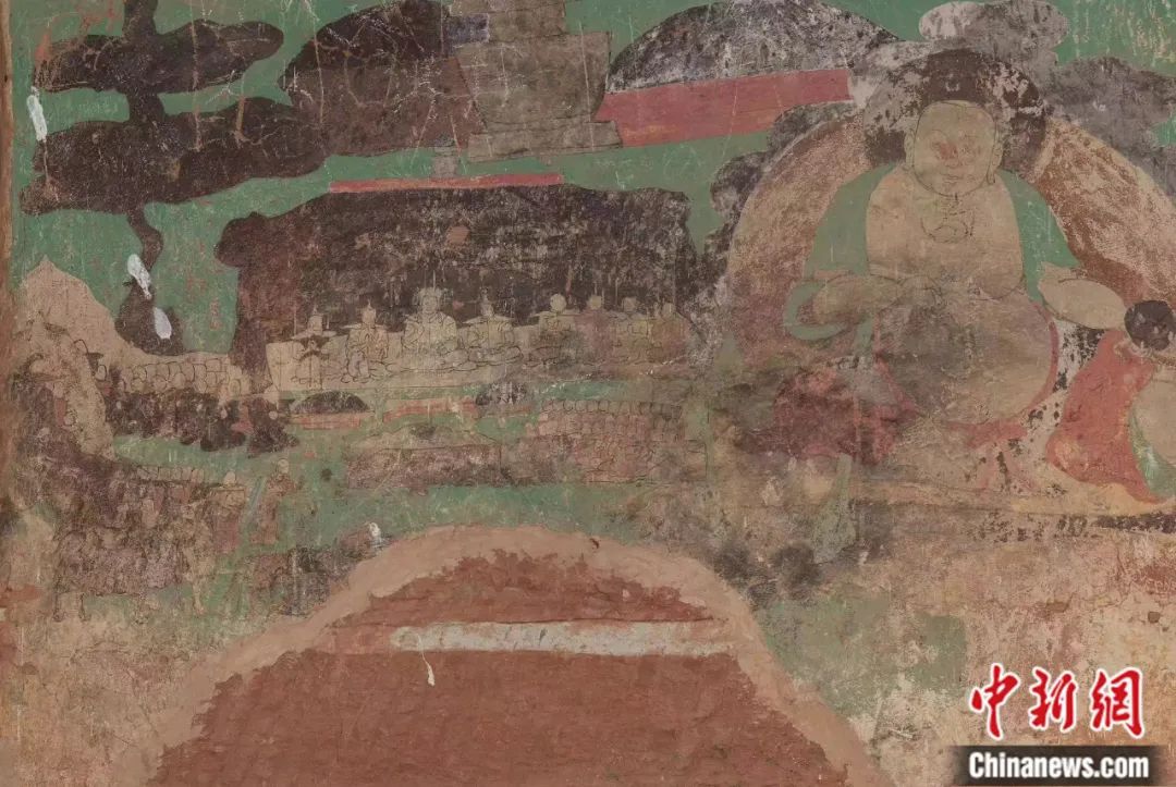 阿爾寨石窟第33窟右壁壁畫(huà),佛傳故事圖。鄂托克旗官方供圖