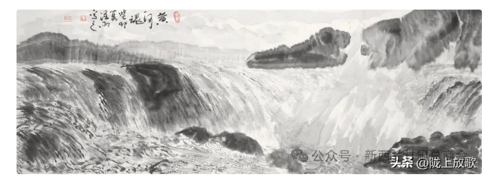 藝無止境。30多年來,何建祥先生一方面不斷汲取馬西園等老一輩藝術(shù)家豐厚的藝術(shù)養(yǎng)分;一方面道法自然,不斷汲取來自黃河的天然養(yǎng)分。這使得何建祥先生的畫既有師承:又有突破。他畫黃河,善用景別,善用焦墨,善用散鋒,善用皴擦,把“黃河之水天上來,奔流到海不復(fù)回”的磅氣勢表現(xiàn)得十分貼切,已然形成了自己的藝術(shù)面貌和個(gè)人風(fēng)格。
