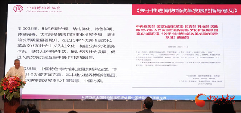 交流會(huì)上,中國博物館協(xié)會(huì)理事長(zhǎng)劉曙光作了《從第五批全國博物館定級(jí)評(píng)估看中國博物館高質(zhì)量發(fā)展》的主旨發(fā)言,中央廣播電視總臺(tái)《簡(jiǎn)牘探中華》節(jié)目總導(dǎo)演馬洪濤,中國建筑西北設(shè)計(jì)研究院有限公司副總經(jīng)理靳江,深圳市藝博堂數(shù)字文化科技集團(tuán)有限公司總經(jīng)理鄭洵,甘肅簡(jiǎn)牘博物館副館長(zhǎng)楊眉分別進(jìn)行了主題分享,為甘肅省博物館事業(yè)的高質(zhì)量發(fā)展建言獻(xiàn)策。