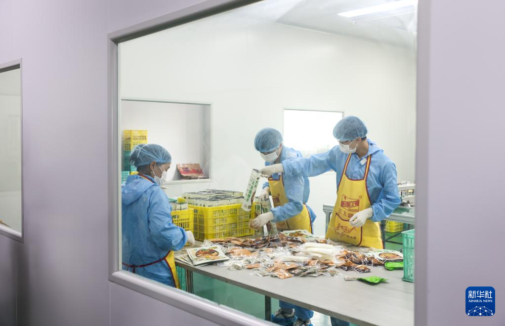 7月22日,工作人員在甘肅天水市一家麻辣燙企業(yè)車間內(nèi)包裝產(chǎn)品。新華社記者 呂帥 攝