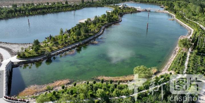 2024年7月27日,航拍甘肅省酒泉市金塔縣城西生態(tài)湖,綠意盎然,生機(jī)勃勃,構(gòu)成了“戈壁水鄉(xiāng)”的獨(dú)特畫卷。中新社發(fā) 曹紅祖 攝