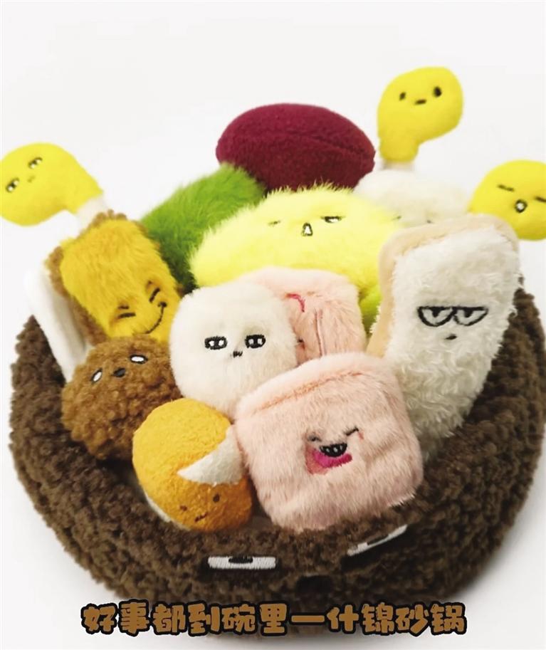 記者看到,“麻辣燙”和“砂鍋”毛絨玩具花束有多個單品,模擬了丸子、蟹排、年糕、香菇等菜品。而且每款都有自己的名字——嘻嘻西蘭花、香香香菇、黏黏年糕、哇哇菜、謝謝蟹排、玩去吧丸子??蓯塾腥さ拿q玩具再次走紅網(wǎng)絡(luò),成為不少“大朋友”的必入文創(chuàng)單品。連日來,這款單品引發(fā)近20萬人涌入天貓旗艦店搶購,“麻辣燙”幾度售罄。甘肅省博物館文創(chuàng)中心負責(zé)人崔又心介紹,“麻辣燙”火了之后,天貓店客服每天都會收到來自消費者“求補貨”留言。
