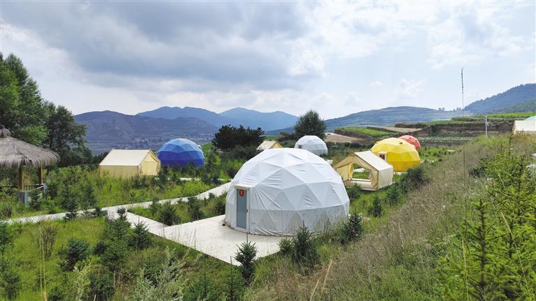 沿興隆山大道進入滿目翠綠的原始森林,隨著彎曲的盤山公路走進了哈班岔村時,首先映入眼簾的便是層層遠山間科技范十足的民宿太空艙和造型獨特的露營帳篷,山坡上植被茂密,臨近山腳下的梯田色彩豐富,將一幅自然與人文相互映襯的鄉(xiāng)村畫卷展現(xiàn)在人們面前。