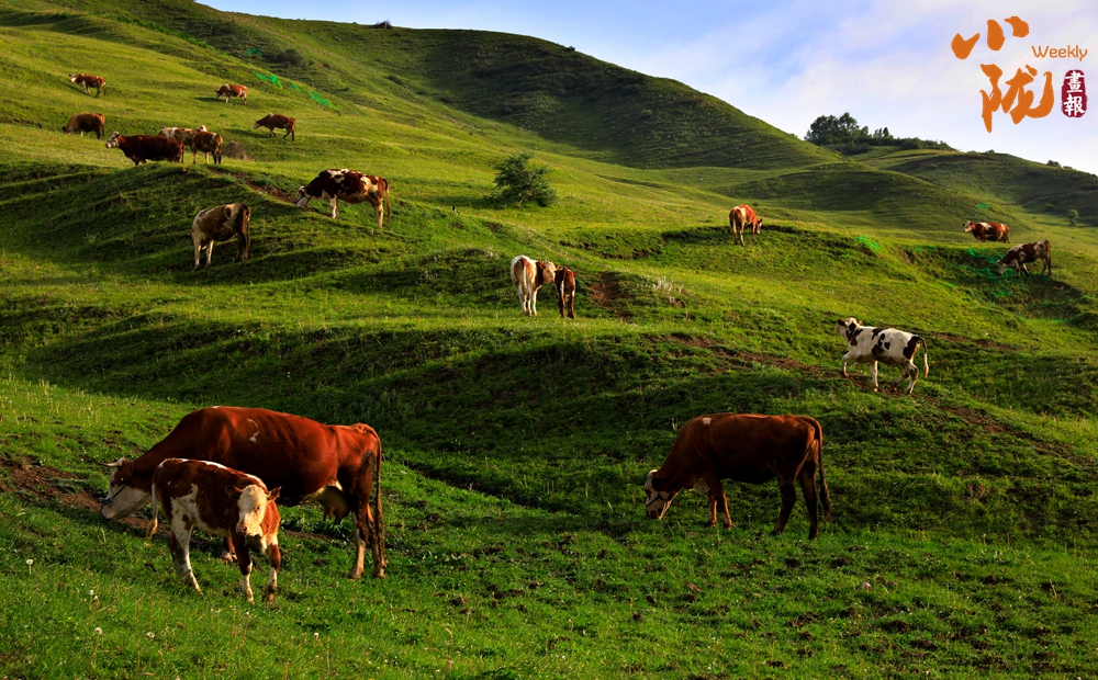 這里是少有的原生態(tài)草場(chǎng)。天空湛藍(lán),白云朵朵,成群的牛羊悠閑地吃著草,初秋的風(fēng)吹拂著它們的毛發(fā),輕柔而溫暖,仿佛給予它們生命的滋潤(rùn)。