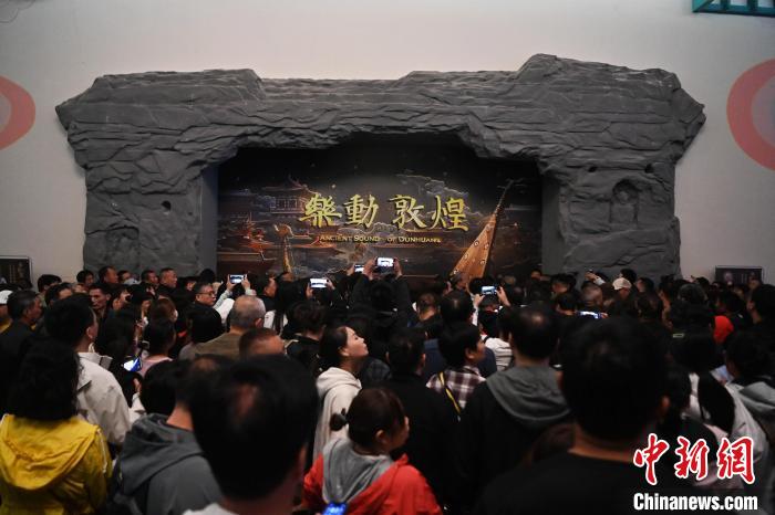 圖為游客觀看大型洞窟式沉浸體驗劇《樂動敦煌》。九美旦增 攝