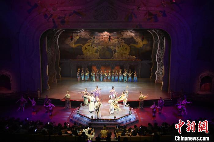 9月5日晚,甘肅敦煌旅游熱度不減,眾多游客觀看大型洞窟式沉浸體驗劇《樂動敦煌》。該劇溯源敦煌文化,借助對莫高窟壁畫、藏經洞古籍進行解讀,用全息投影、3D威亞等高科技手段,以全沉浸式的呈現(xiàn)方式,演繹西域少年追尋藝術的傳奇故事。劇中運用了琵琶、排簫、阮等民族樂器及仿制敦煌古樂器的音色,通過胡旋舞、腰鼓舞、琵琶舞等典型舞蹈,展現(xiàn)了敦煌壁畫中的樂舞盛景,全面展現(xiàn)敦煌傳承千年的樂舞文化魅力。九美旦增 攝