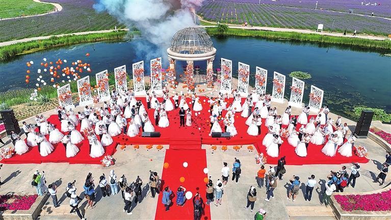 陽光、微風(fēng)、花海……夏季的金昌紫金花海充滿浪漫氣息,溫柔而熱烈。6月29日上午,連續(xù)舉辦七屆的“遇見愛,遇見你”薰衣草集體婚禮如約開場。近年來,一場場薰衣草之約集體婚禮引領(lǐng)金昌婚慶經(jīng)濟進(jìn)入一個快速發(fā)展階段,集體婚禮也成為金昌旅游對外宣傳推介的一張亮麗名片。