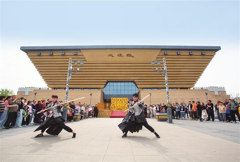 近期,“漢宴”也收獲了大量的關注。這個河西首家漢文化沉浸式體驗餐項目,融漢文化展示、歌舞演藝、場景體驗、美食品味于一體,打造餐飲消費新場景,讓游客身臨其境感受文化魅力。