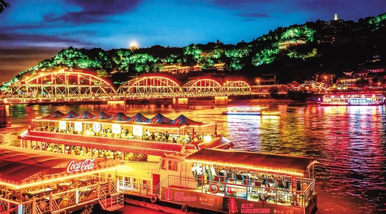 作為蘭州游的必打卡景點(diǎn),整個(gè)國慶假期中山橋上的游客絡(luò)繹不絕。每到傍晚,中山橋上更是人山人海,“金城壹號”“悠游蘭州號”“黃河啤酒號”等游輪載著南來北往的游客穿梭于黃河之上,為黃河之濱增添了一道流動的風(fēng)景。
