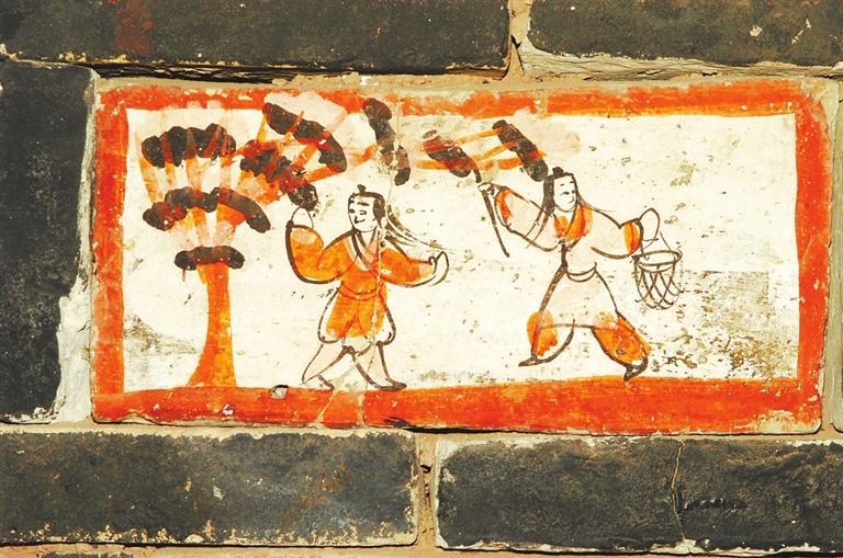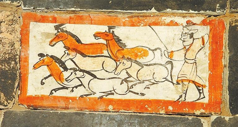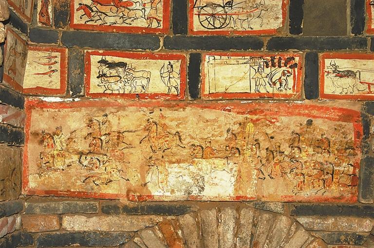 許三灣城魏晉十六國(guó)墓,20世紀(jì)90年代發(fā)掘,出土有彩繪畫像磚,有前秦建元十四年(公元378年)紀(jì)年磚。
