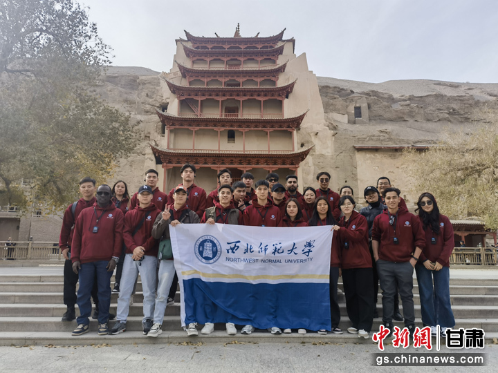 10月25日,來(lái)自西北師范大學(xué)的22名留學(xué)生走進(jìn)莫高窟,體驗(yàn)文化之旅。