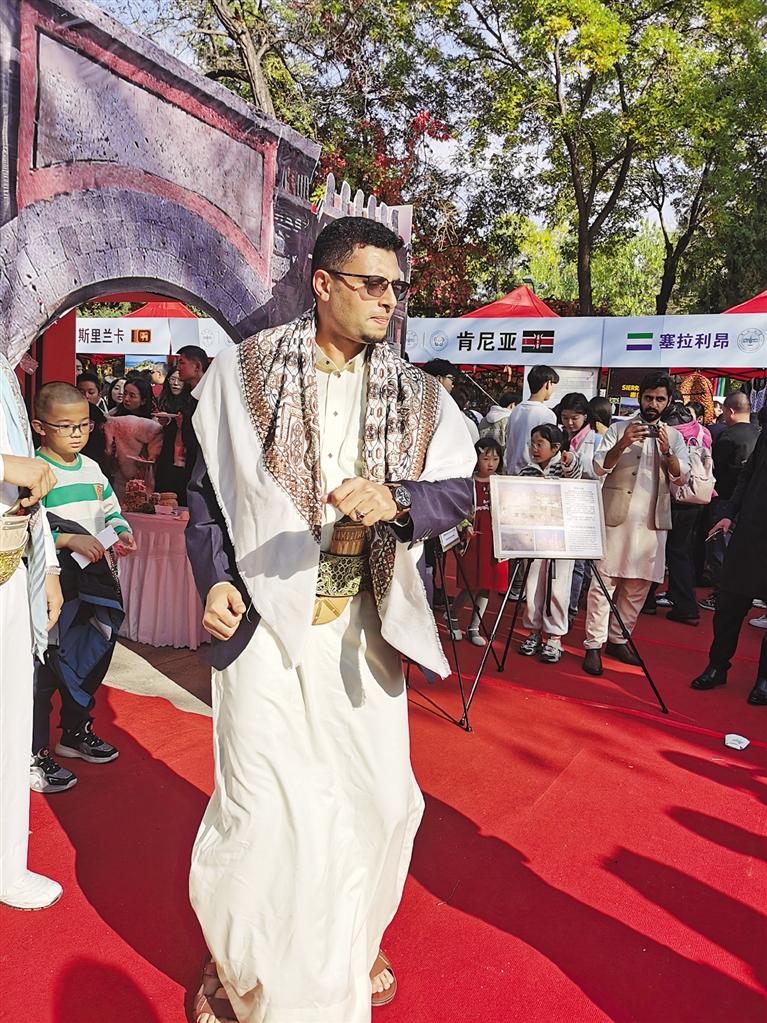 當日下午,記者來到現場看到,中國、馬達加斯加、蘇丹、俄羅斯、德國、也門、斯里蘭卡、印度……各國展臺前人們摩肩擦踵,空氣中彌漫著美食的味道與火熱的激情。身著各國傳統(tǒng)服飾的人群中,滿目都是俊男靚女,讓人恍若置身國際大都會。
