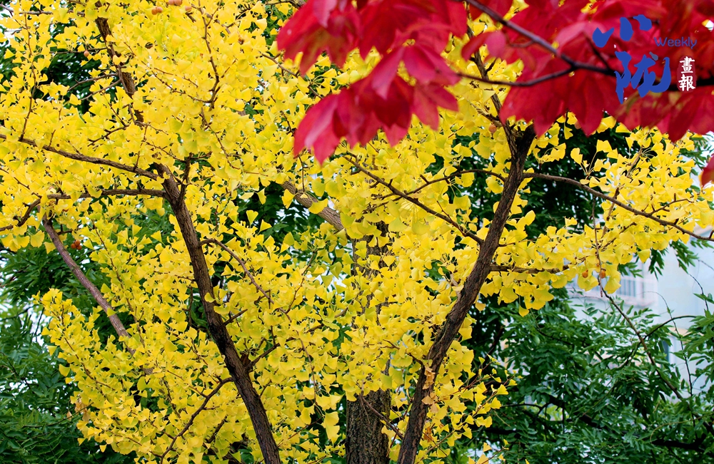 金色、紅色、綠色的秋葉融為一體,繽紛多彩,枝葉隨風(fēng)擺動(dòng),發(fā)出簌簌聲響,令人心曠神怡。