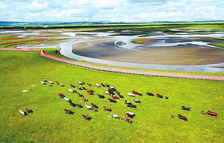 在這里,每看一眼都是風景,每行一步都有故事,每一片土地都是一幅絕美的圖畫。黃河從云煙蒼茫的雪域高原流出,冰雪化為淙淙流水,沿途九曲回腸,匯納百川,留下一個個碧波蕩漾的湖泊,懷抱起一片片豐腴壯美的草原,孕育著一座座城鎮(zhèn)和村落,養(yǎng)育了各族兒女,播撒著希望,醞釀著生機……