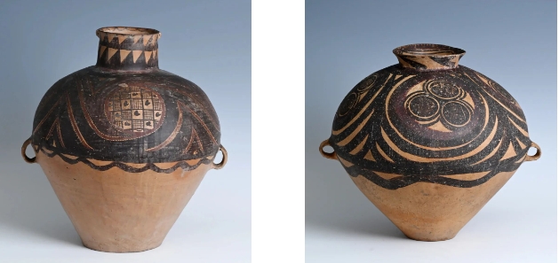 馬家窯文化創(chuàng)造了大批彩陶藝術精品,被譽為新石器時代彩陶之冠。形式優(yōu)美的漩渦紋是馬家窯類型的典型代表作,精美的半山類型彩陶又被公認為馬家窯文化的巔峰階段,這一時期的彩陶器形勻稱圓潤,紋樣采用黑紅兩色繪制,更加繁麗精致,器具造型和圖案渾然一體,給人帶來賞心悅目的美感享受。