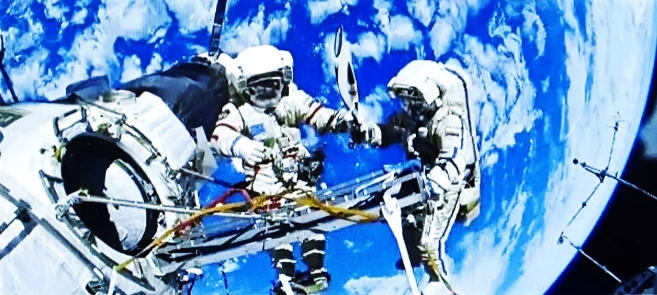 華夏宏猷,探秘穹蒼,志壯九霄。望神舟騰躍,昂然破霧;星河競(jìng)渡,自若凌濤。萬(wàn)仞逍遙,千鈞穩(wěn)負(fù),眾慧凝心膽氣豪。長(zhǎng)天里,看巡行軌跡,陣布云高。