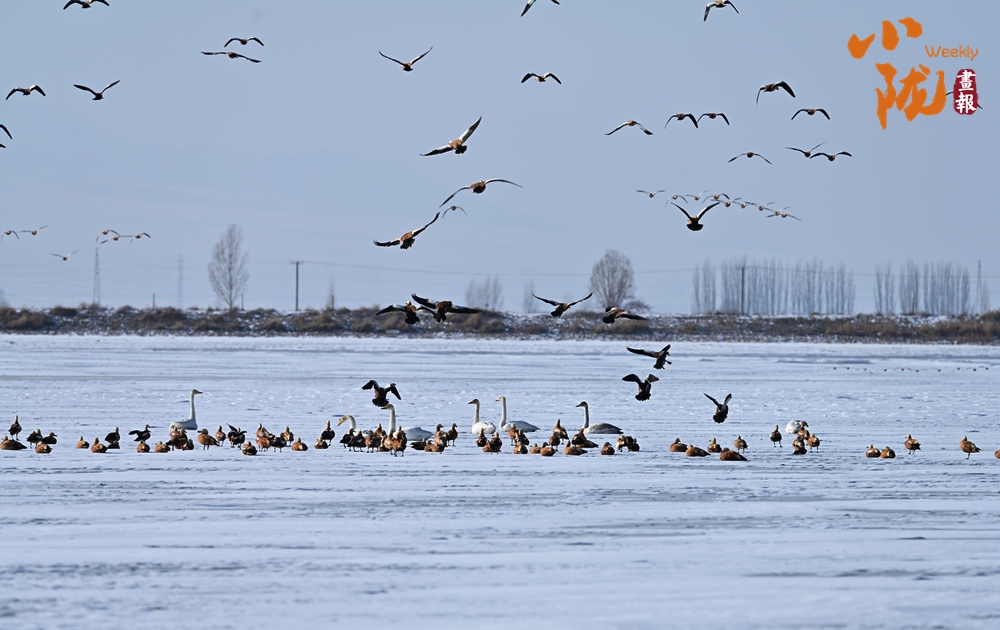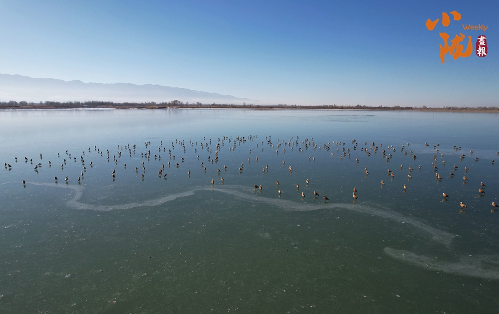 萬物復(fù)蘇,臨澤黑河濕地白天鵝、赤麻鴨等棲息覓食,構(gòu)成了一幅和諧的生態(tài)美景。